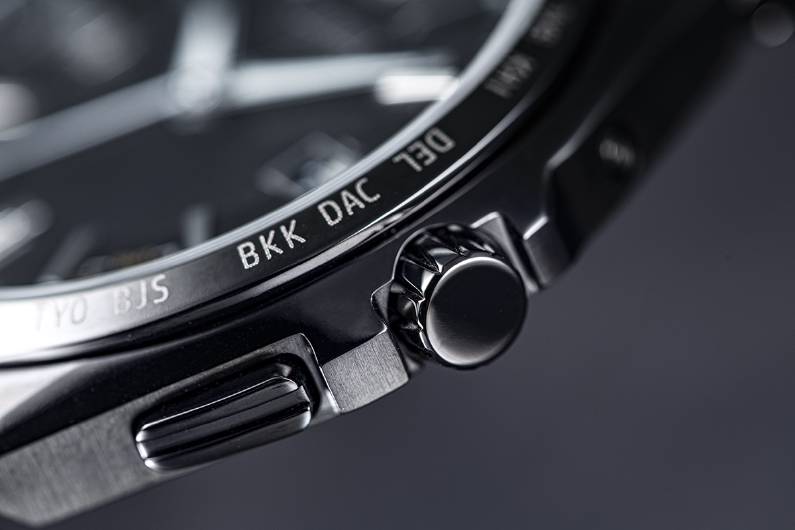 まず時計としての基本的な部分では、地球上のほとんどの地域で正確な時を刻んでくれる「パーフェックスマルチ 3000」を備えている。時刻ズレの原因となる衝撃や磁気の影響を防ぐしくみと、日本、米国、欧州、中国の世界4エリアに設置されている電波送信所からの電波を受信して、滞在中の地域で適切な時刻・日付を維持する仕組み、この2つが組み合わされたものだ。一度ワールドタイム機能で滞在中の地域を指定すれば、手間がかかるうえにズレやすい手動の時刻合わせを一切することなしに使い続けられる。予定通りに仕事をこなすことが信頼につながるビジネスマンにとって、ここは最も重要な機能であることは間違いない。