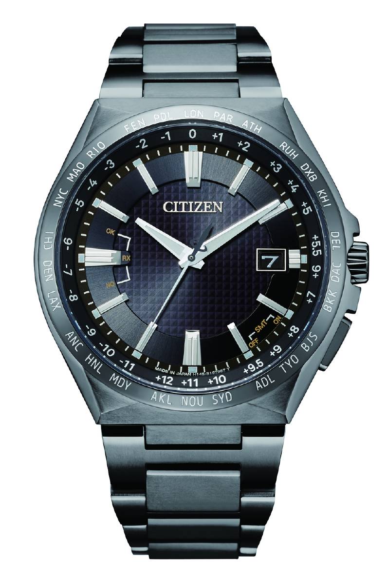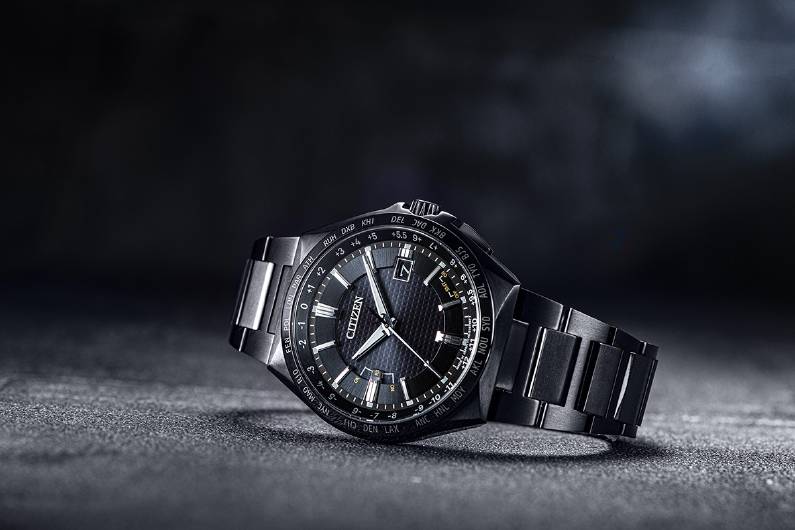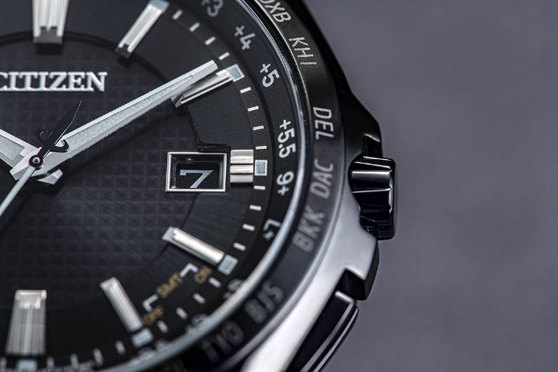 ケース部とバンド部には、シチズン独自の製造・加工方法で仕上げた高品質チタニウムに、「デュラテクト」という独自の表面硬化技術を用いてコーティングを施した「ブラックチタン™(チタニウム+デュラテクトDLC)」を採用。「スーパーチタニウム™」とも呼ばれるこの素材は、軽快感や肌にやさしい滑らかな触り心地を提供するだけでなく、一般的なステンレスの5倍以上になるという突出した硬度も実現している。