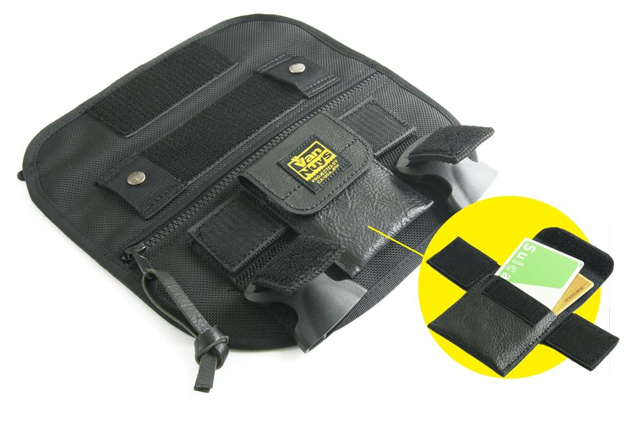 カードケースも装着。ベルクロで付いているので、使いたいときには取り外して使用できる