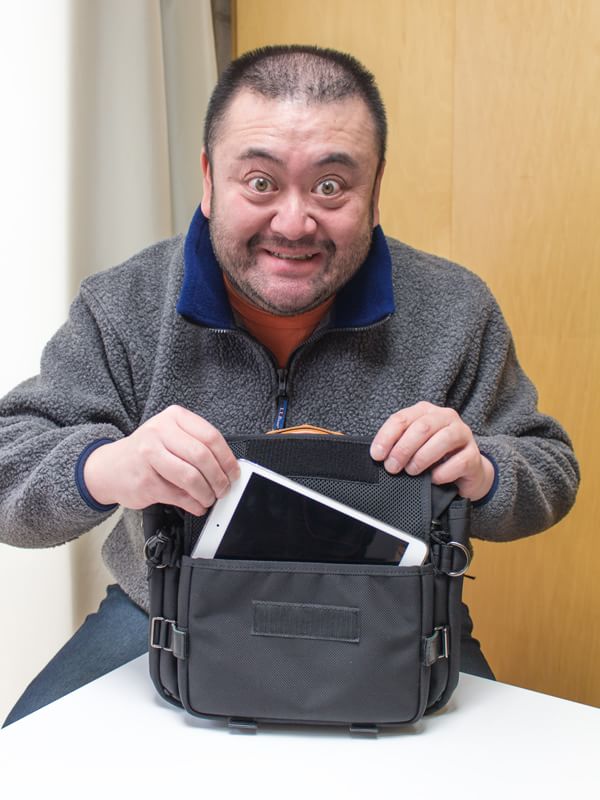 バッグ背面にはタブレットケースを装着してみたぜ~