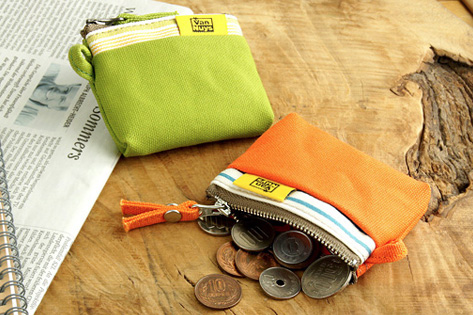 愉快ですね〜。そして帆布の風合いもイイ感じ。手のひらサイズながらも容量たっぷりで、実用性も高いです。必要な分のコインと折った紙幣を入れて、ポケットに忍ばせ、身軽にちょっとお買い物〜お昼ごはん、みたいなときに愉快&便利に使えると思います。なお、素材は帆布製以外にもナイロン製があります。