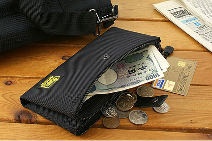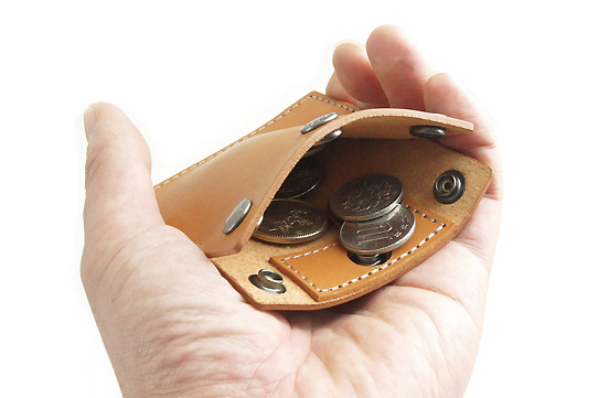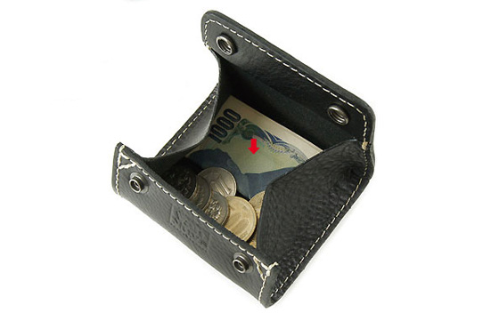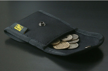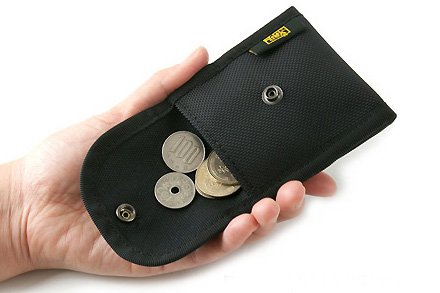小銭だけじゃなくちょっとしたものを入れるのにも便利それから「両面コインケース」。表と裏にポケットがあるスナップボタン開閉式の小銭入れですな。カラフルさはありませんが、実用性がかな〜り高いです。たとえば片側に500円玉/100円玉/50円玉を入れ、もう片側に10円玉/5円玉/1円玉を入れ、硬貨を分類しつつ使ったり。あるいは、片側に折った紙幣、片側に高価を入れたり。これもまたちょっと買い物的なときに大役立ちします。お値段1800円。
