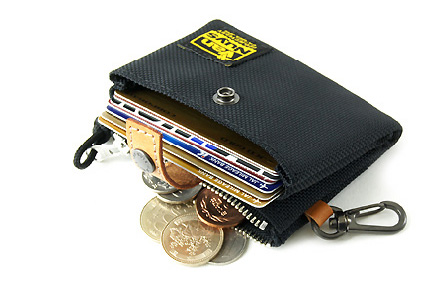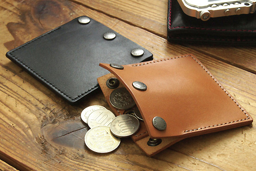 このうち、ワタクシがオススメしたいのは「ツインケース/Type-B」。片側をコインケースとして使い、片側をカードケースとして使うと、ナニカとヒッジョーに便利な品です。5〜6枚のカードが余裕で収まり、コインもたっぷり入ります。オープン側にカードとともにお札を入れたりしても便利ですね〜。