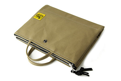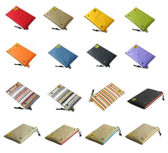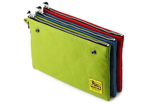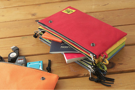 汎用できるファスナーポーチなんですが、ポーチどうしをスナップボタンで合体させられるのが非常に便利。好きなだけ何個でも合体可能です。また、合体したポーチを外側から覆って手提げにできる「手提げ付 ツインポケットファスナーポーチ」という製品まであります。お値段2480円から。目的に応じて自在に使い分けできる感じですな♪