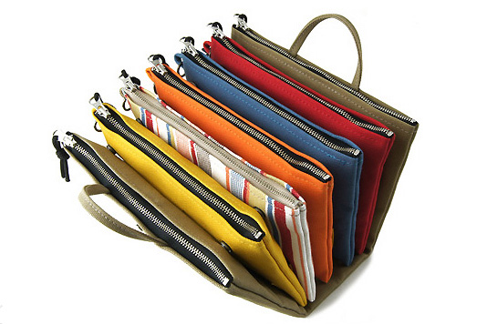 「仕分けファスナーポーチ」を合体できるそれから、最近この「仕分けファスナーポーチ」用として加わった新製品の「仕分けファスナーポーチ用仕分けポケット/仕切り」各種。ポーチ内部を仕切れる帆布製のアイテムですが、これがメチャメチャ便利。お値段1600円から。