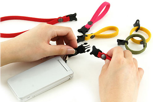 これ、じつはかつてドコモショップでプレゼントされていた製品で、「あっソレ以前に使ってた!!」という方も少なくないと思います。ワタクシもコンパクトデジカメのストラップとして使っています。カラフルで汎用的に使えるので、た〜くさん持っております。