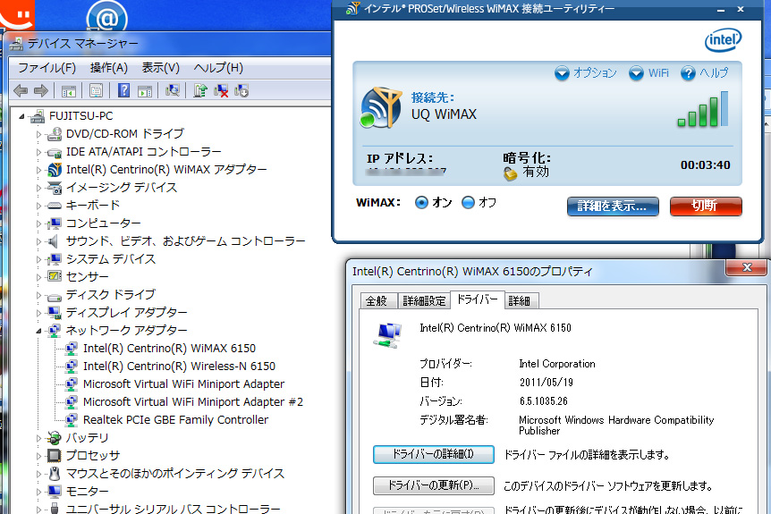 安本インテル® Centrino® Wireless-N+WiMAX 6150は2011年の春モデルから使っています。インテルから最新のドライバがリリースされて、本領を発揮できる状況になりました。