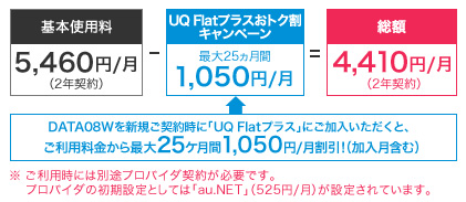 (※)ご利用時には別途プロバイダ契約が必要です。プロバイダの初期設定としては「au.NET」(525円/月)が設定されています。