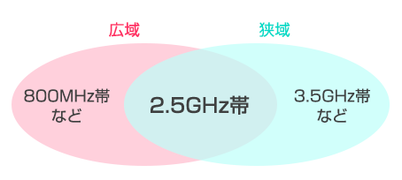 ―周波数帯はほぼ同じと考えていいのですね。最近、プラチナバンドという言い方で、低い周波数帯がもてはやされていますが、2.5GHz帯というのはどのような性格を持った周波数帯なのでしょうか。