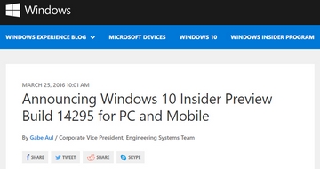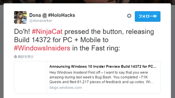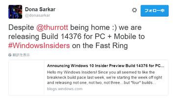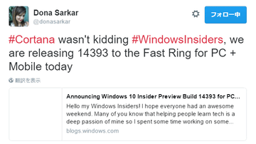PC版とモバイル版のBuild 14946が“Fast”リングで利用可能