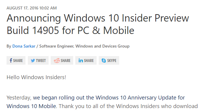 “Anniversary Update”以降初の「Windows 10 Insider Preview」Build 14901が公開