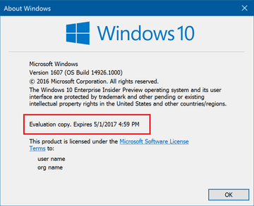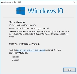 Windows 10 Build 10240はライセンス条項からプレリリース版の表記が消える