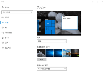 デスクトップの右クリックメニューにある[個人設定]コマンドで起動することも可能