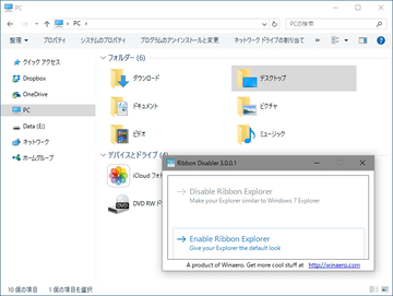 Windows 8/10のエクスプローラーをWindows 7風に戻せる「Ribbon Disabler」