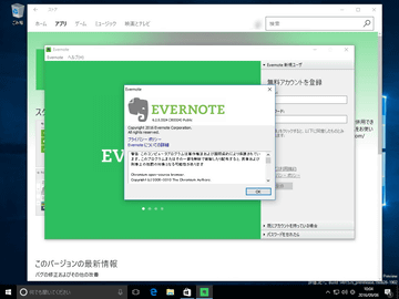 ストアアプリ「Evernote Touch」のサポート終了に伴う措置。バージョン1607が必要