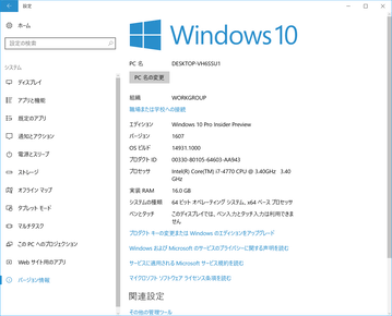 Anniversary Updateを適用しないと利用できないアプリなどがあるため