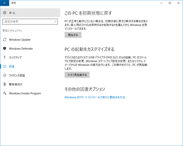 1カ月以内ならば手軽に「Windows 7」「Windows 8.1」へのロールバックも可能