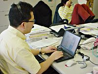 「インターネットマガジン」は8人で一つの製品を作っていくというチームワークが重要な仕事。スタッフそれぞれが担当ページを持ち、取材、打ち合わせなどでオフィス以外の場所を動き回る必要がある。しかし、それは決してバラバラにする孤独な仕事ではなく、チームのコミュニケーションがうまくとれないとよい記事は作り上げられないのだ。