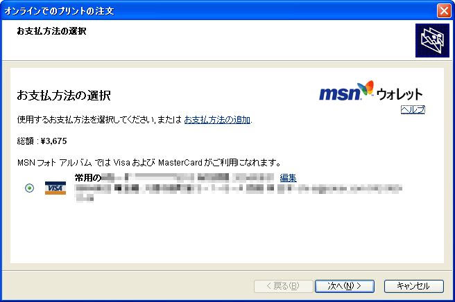 MSN ウォレットへ登録したものではない別のクレジットカードから支払いを行える