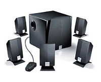 「Inspire 5.1 5200」は、Dolby Digital/EAX対応ゲームでの 5.1ch 再生に最適なディスクリート5.1chアンプ/スピーカーシステムだ。従来のオーディオ用スピーカーは、ツイーター、スコーカー、ウーファーなどを組み合わせたものをペアで使用するが、5.1chスピーカーシステムの場合は5台のサテライトスピーカーと1台のサブウーファーという構成。この6台のスピーカーにより、従来の2chスピーカーを完全に凌駕するようなサウンドの広がりを味わうことができるというのだから期待せずにはいられない。そのサテライトスピーカーだが、音色のバランスを損なうことなく音響精度を向上させる「イメージフォーカシングプレート(IFP)デザイン」を採用。サブウーファーは小さいながらも出力17Wとパワフルだ。