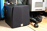 接続は簡単で良かったのだが、筆者の仕事部屋が非常に狭いため、スピーカーのサイズが実は気がかりであった。その外形寸法だが、サテライトスピーカーは9.0(幅)×13.5(高さ)×10.0(奥行き)cm。サブウーファーが22(幅)×22.2(高さ)×26(奥行き)cm。想像していたほど大きくなかったので、安心して設置できた。