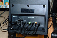 スピーカーの接続は、至って簡単。まず、サブウーファーとExtigy-LEを3プラグステレオミニプラグケーブルで接続。次にサテライトスピーカーに付いているピンプラグケーブルをサブウーファーに繋ぐ。あとは電源ケーブルと、ワイヤードボリュームコントローラー(上記写真参照)を接続するだけだ。
