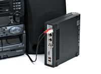 | ▲外付けのブレイクアウトボックス背面のRCA入力に接続 |